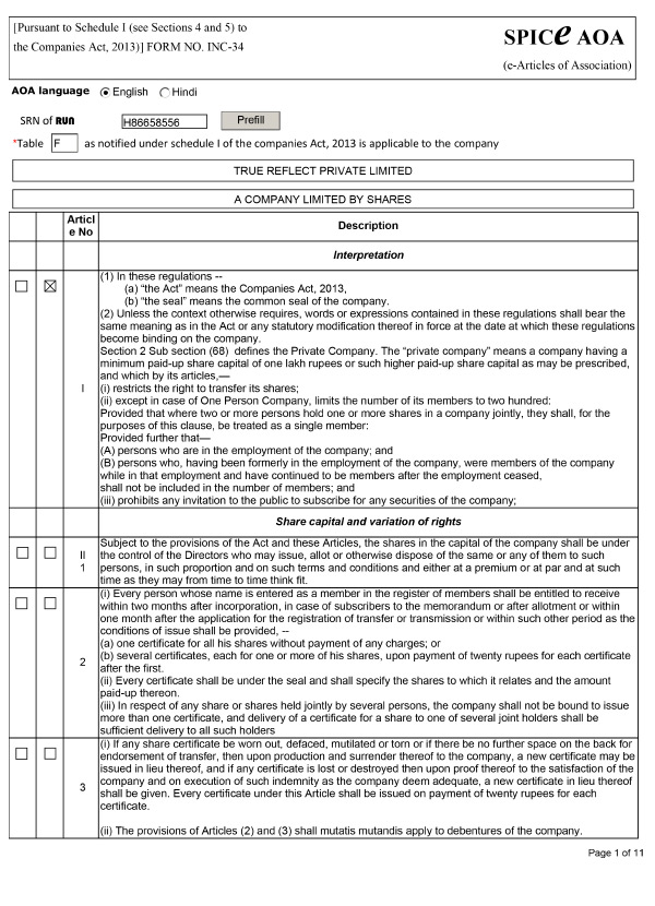 e-Articles of Association