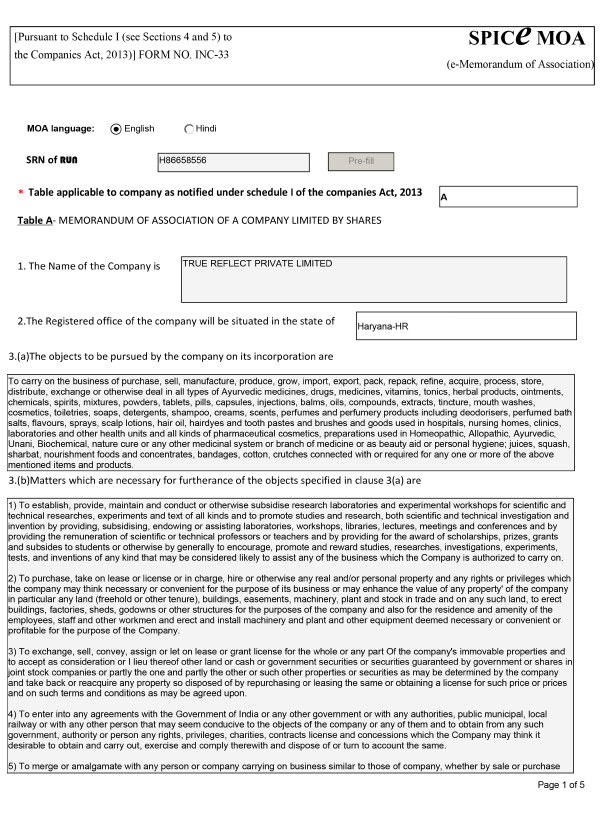 e-Memorandum of Association