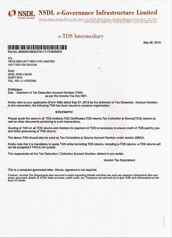 TAN Certificate